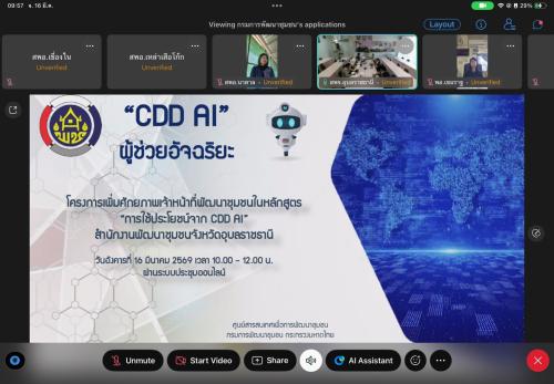ในการนี้ นายธนภัทร เป้งทอง พัฒนาการอำเภอเขื่องใน พร้อมด้วยเจ้าหน้าที่พัฒนาชุมชน ได้เข้าร่วมฝึกอบรมในครั้งนี้ เพื่อเรียนรู้วิธีการนำนวัตกรรมปัญญาประดิษฐ์ (AI) ของกรมการพัฒนาชุมชน หรือ "CDD AI" มาประยุกต์ใช้ในการวิเคราะห์ข้อมูลและสนับสนุนการจัดทำแผนพัฒนาตำบล ซึ่งเป็นหัวใจสำคัญในการกำหนดทิศทางการพัฒนาเชิงพื้นที่